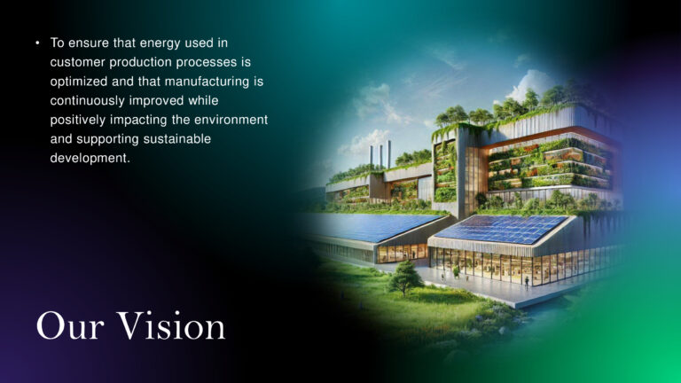 **Vision**: To ensure that energy used in production processes is optimized and that manufacturing is continuously improved, while positively impacting the environment and supporting sustainable development.